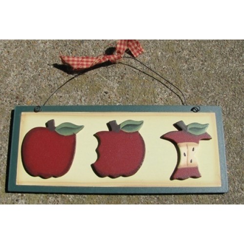 Wood Apple Plaque 281-Apple Plaque Wood Hangs by Wire and mesaures 8 inches long by 3 inches high