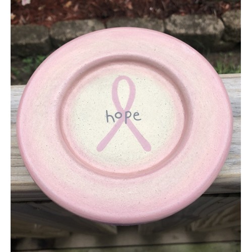 31848H-Hope Cancer Plate, measures 6 inches in diameter. Pink Ribbon Plates