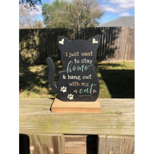 G34286C - I just want to stay home and hang out with my cat, measures 6 inches high by 4½ inches wide and 2½ inches deep.