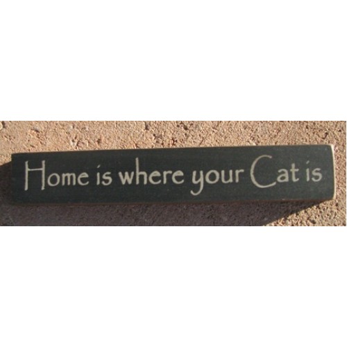 32316HB - Home is Where Your Cat Is, MINI wood block, measures 6 inches long by 1 inch high. Black in color with off write writing.