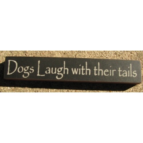 32315TB-Dogs Laugh with their Tails. MINI wood block, measures 6 inches long by 1 inch high. Black in color with off white lettering