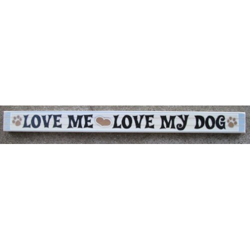 PS021-Love Me Love My Dog wood block, measures 17 1/2 inches wide by 1 1/2 inches high, Handmade in America