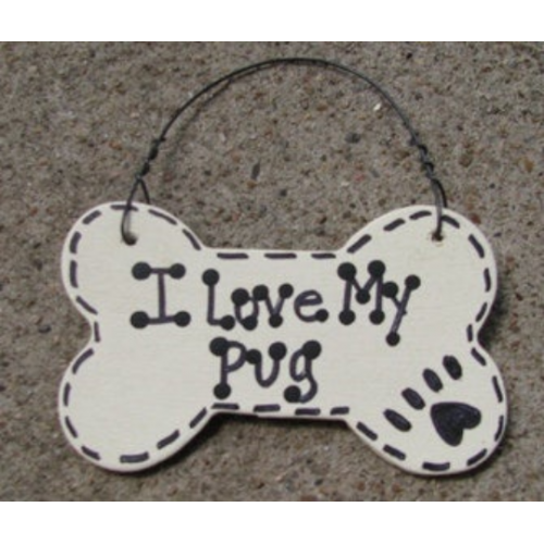 Wood Dog Bone 29-2083PUG I Love My Pug or We Love Our Pug