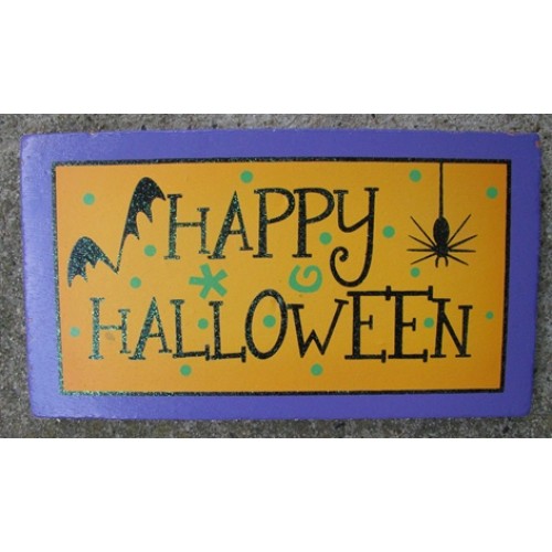 59038HH - Happy Halloween wood block, measures 7 inches wide by 4 inches high