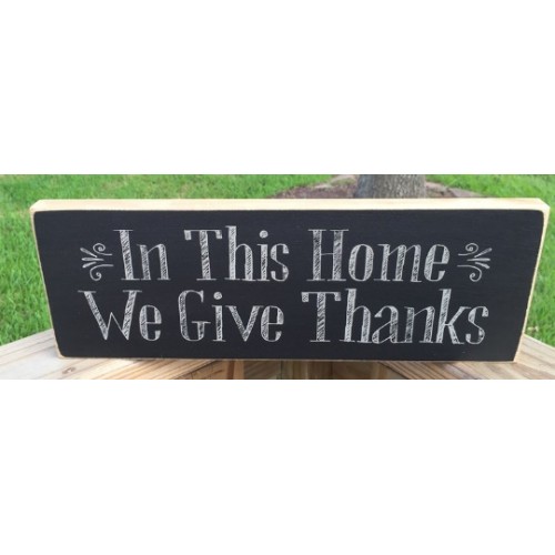 Sign is Stained on Back & Sides. The front is painted Black . In This Home We Give Thanks is stenciled in Cream Finish: Sanded edges create a worn look.