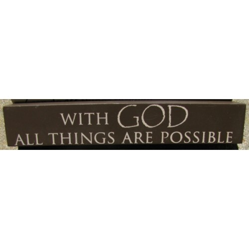 8W1337G With God all things are possible wood block, measures 7 inches wide by 1 1/2 inches high.