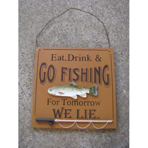 60301E- Eat Drink and Go Fishing For tomorrow we lie wood sign