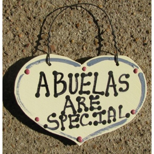 1035A - Abuelas Are Special small wood heart , measures 3 1/4 inches high by 4 1/2 inches wide, hangs by wire and Handmade in Texas