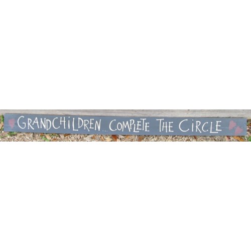 31342GC - Grandchildren Complete the Circle Wood Sign, measures 43 inches long by 3 1/2 inches high. Handmade in America