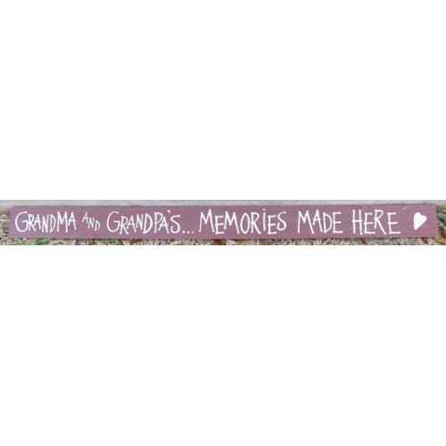 31342GG - Grandma & Grandpa's Memories Made Here, measures 43 inches wide by 3 1/2 inches high. Handmade in America Burgundy in Color with white lettering