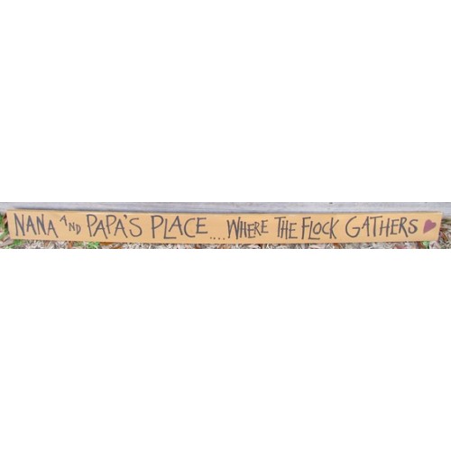 31342NP - Nana & Papa's Place Where the Flock Gathers, measures 43 inches long by 3 1/2 inches high. Handmade in America