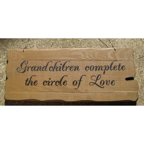 32295G Grandchildren Complete the Circle of Love wood sign, measures 12 inches wide by 5 inches high, hangs by wire
