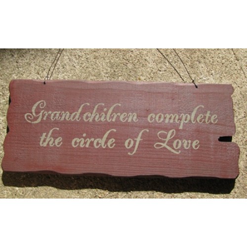 32295M Grandchildren Complete the Circle of Love wood sign, measures 12 inches wide by 5 inches high, hangs by wire