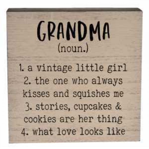 34471 Grandma Definition Box Sign, measures 4 inches squared.