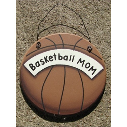 WD1900C - Basketball Mom wood sign, measures 4 inches round and hangs by wire