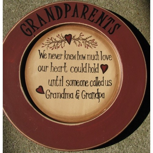 P11GP-11 Wood Grandparents Plate, we never knew how much our heart could hold until someone called us Grandma and Grandpa, measures 11 inches in diameter