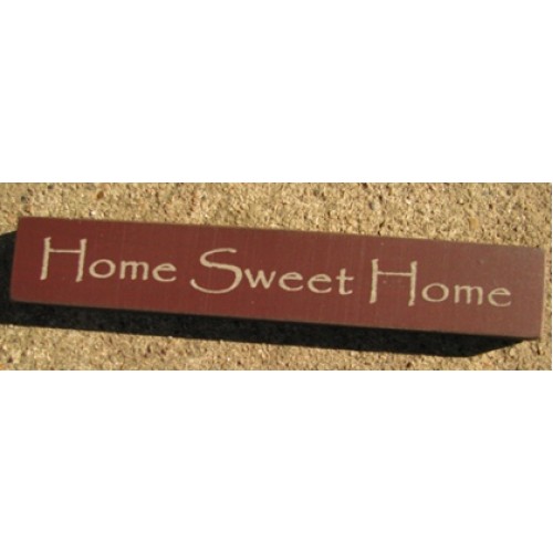 32320HM-Home Sweet Home MINI wood block, measures 6 inches wide by 1 inch high, Burgundy with white writing
