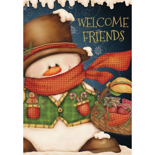 Tags: Welcome Friends House Flag, Snowman Decor, Winter Decor