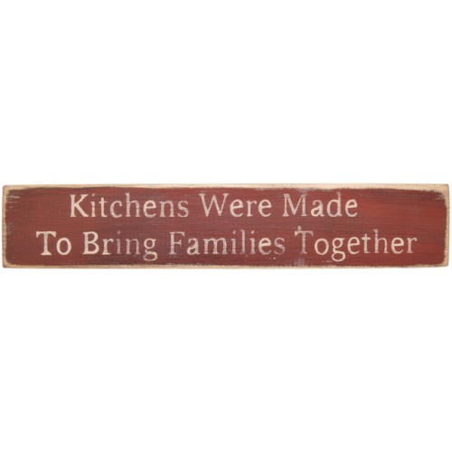 G12553 Messenger Block - Kitchens Were made To Bring Families Together Is stenciled on a burgundy and distressed block of wood. Measures 13 inches wide by 2 1/2 inches high Handmade in America