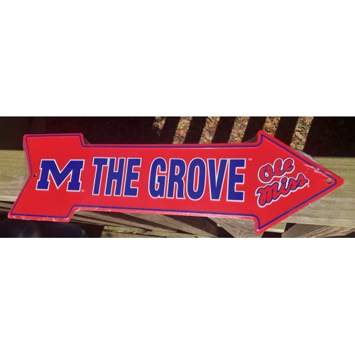 AS25014- M the Grove Old Miss Metal Arrow Sign, measures 19 inches wide by 6 inches high, college licensed product,and made out of Aluminum