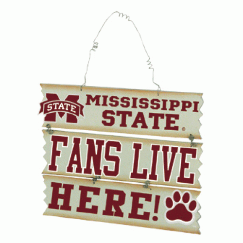 84105-Mississippi State Fan Live Here Wood Sign, measures 12"L x 9 3/4"H x 3/4"W college licensed product and Hangs by wire