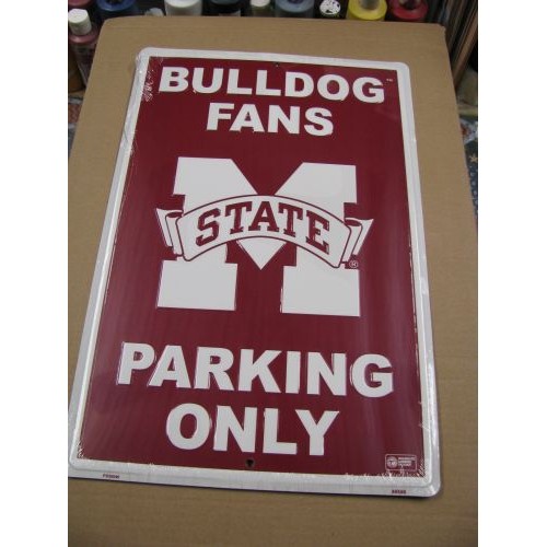 PS30046-Mississippi State Bulldog Metal Parking Sign, measures 12 inches wide by 18 inches high, made out of aluminum, college licensed product