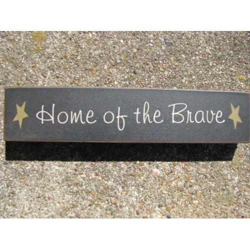 31421HOTB Home of the Brave wood Block, measures 7 inches wide by 1 1/2 inches high, black in coloring and cream lettering and gold star