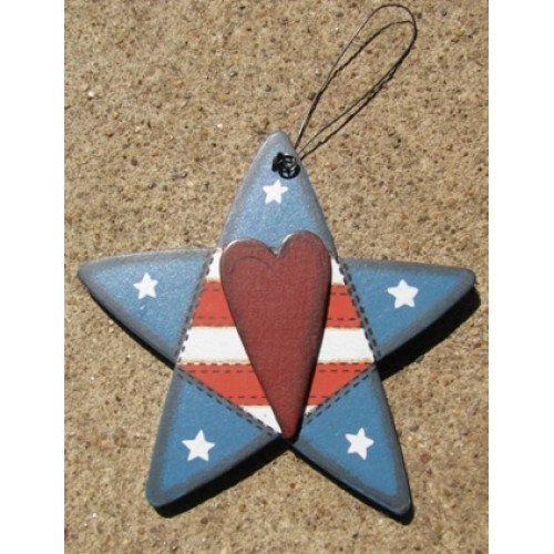 WD1293 - Red White and Blue wood Star, measures 3 1/2 inches wide by 3 1/2 inches high and hangs by wire