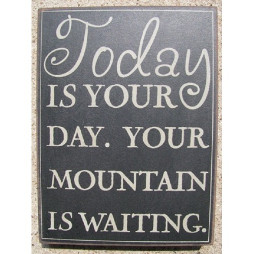 32415B-Today is your Day Your mountain is waiting. Box Sign, measures 8 inches high by 6 inches wide Black in color with white lettering