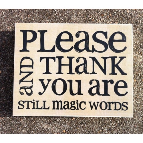 WORDING on Box Sign: PLEASE AND THANK YOU ARE STILL MAGIC WORDS