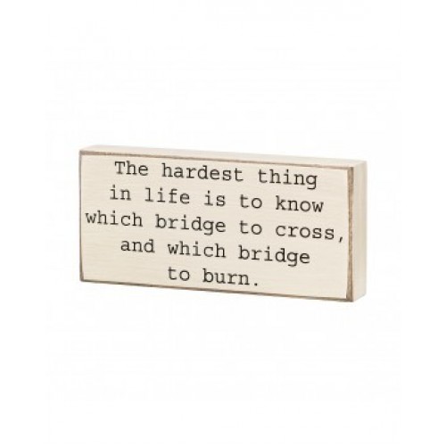 Primitive Wood Box CS6572 The Hardest thing in life is to know which bridge to cross, and which bridge to burn, measures 8 1/2 inches Wide by 4 inches tall