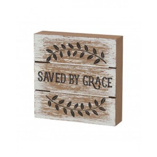 Primitive Wood Box - PS4912 - Saved by Grace, measures 6 inches wide by 6 inches high