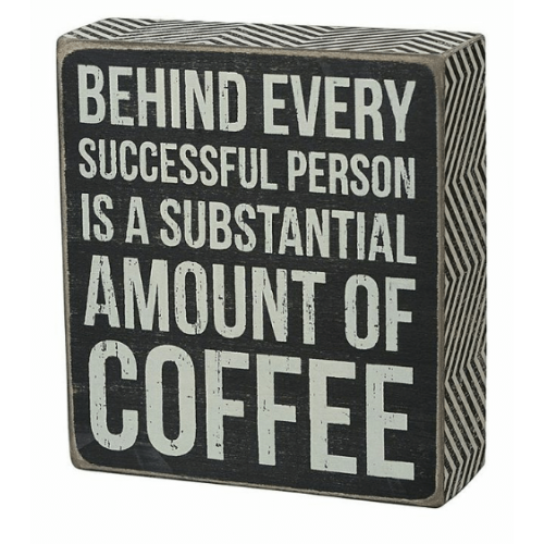 Primitive Wood Box Sign - 21002 Behind Every Successful person is a substantial amount of coffee, measures 5 inches wide by 5 1/2 inches high.