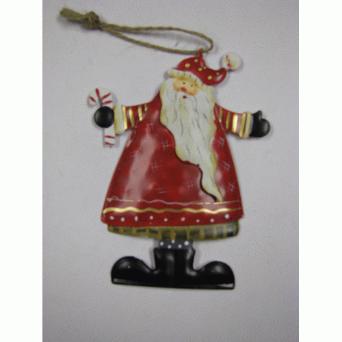 Tags: santa metal ornament, candy cane, santa ornament, santa