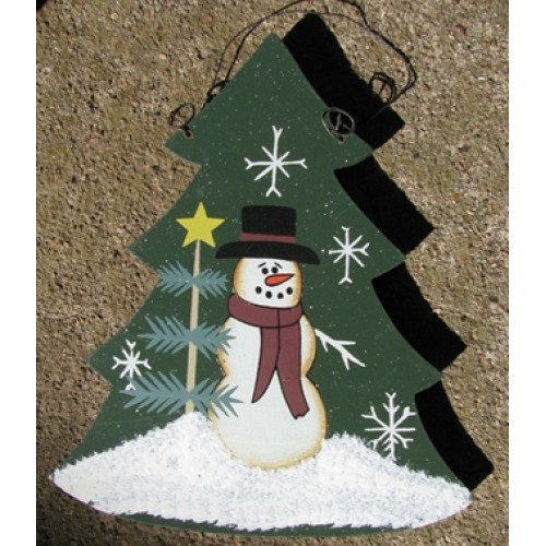 295 - Christmas Tree Wood ornament, measures 4 3/4 inches wide by 6 1/4 inches high, hangs by wire