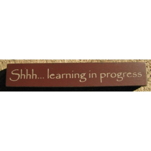 32322SM-Shh...Learning in Progress mini wood block, measures 6 inches wide by 1 inch high, burgundy in color with off white lettering