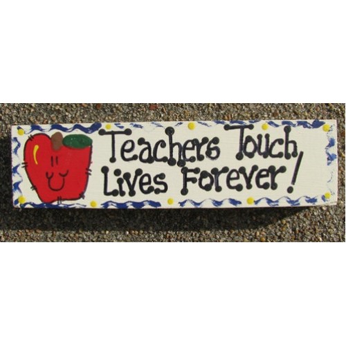 Wooden Block that says "Teachers Touch Lives Forever"