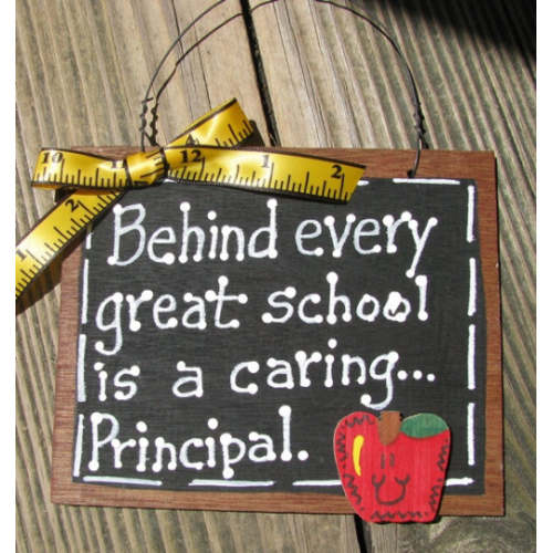 Written on the sign is "Behind Every Great School is a Caring Principal"