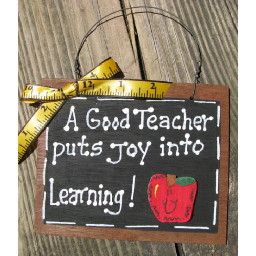 Written on the sign is "A Good Teacher puts joy into Learning!".