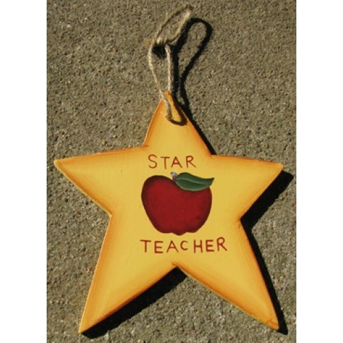WD1157C - Star Wood Teacher, measures 5 1/4 inches wide by 5 inches high and hangs by jute