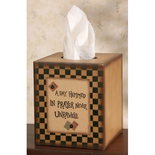 Primitive Tissue Box Cover 8TB2505-Day Hemmed in Prayer Never Unravels