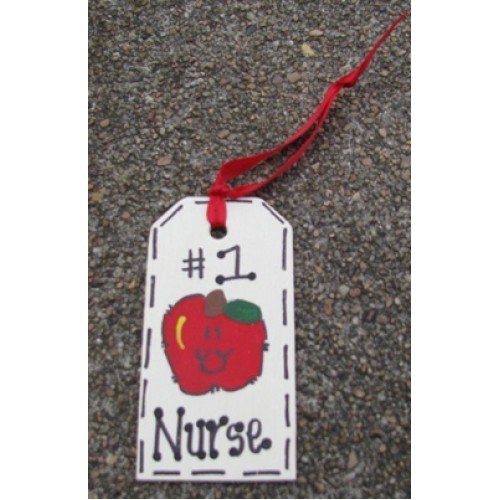 Hand Painted Wooden Teacher Tag. This tag has #1 Nurse written on it.