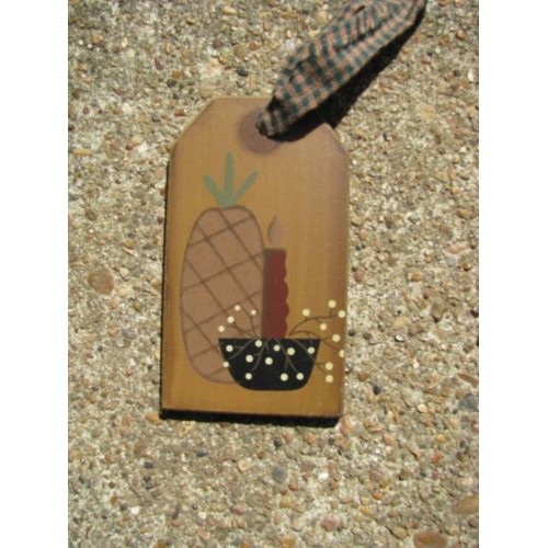 Primitive 31599P Pineapple & Candle Wood Gift Tag
